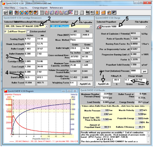 Aunque QuickLoad proporciona cálculos precisos, siempre debes comenzar con cargas mínimas publicadas en manuales de recarga confiables. Usa QuickLoad como herramienta de referencia, no como tu única fuente de datos.